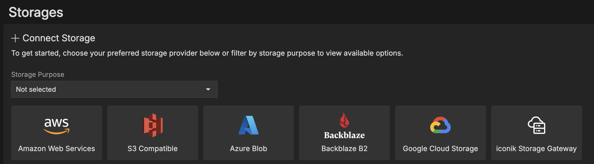 - Select the storage option you'd like to connect from the list of available options.