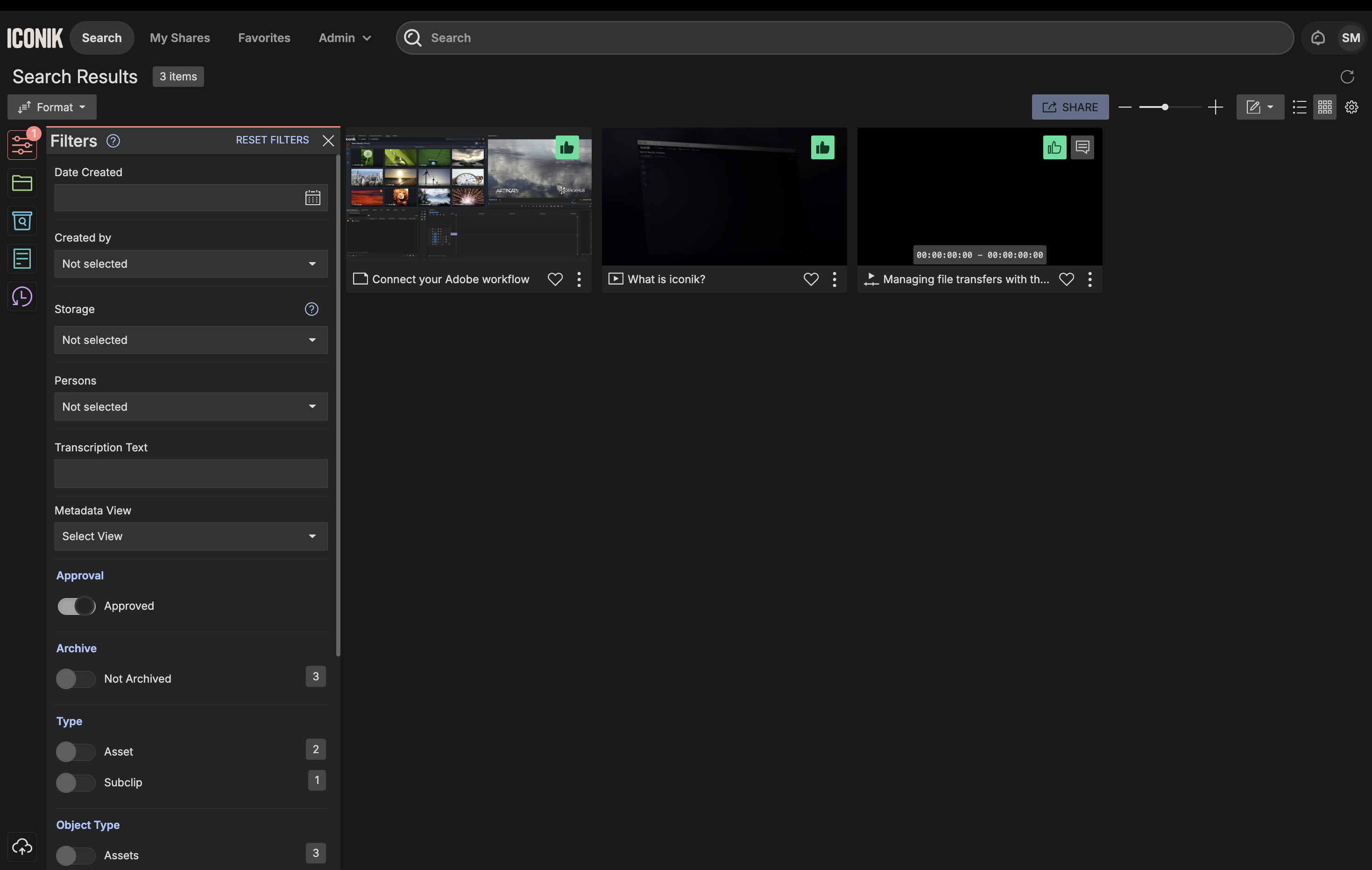 The options that show up will depend on the status of the of the assets in your system and current search. For instance if there is no approved assets, and you haven’t used any other filters, it will not be an option to select Approved.