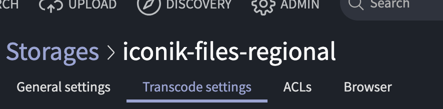 Go to Admin>Storages, and then click the tab “Transcode settings”
