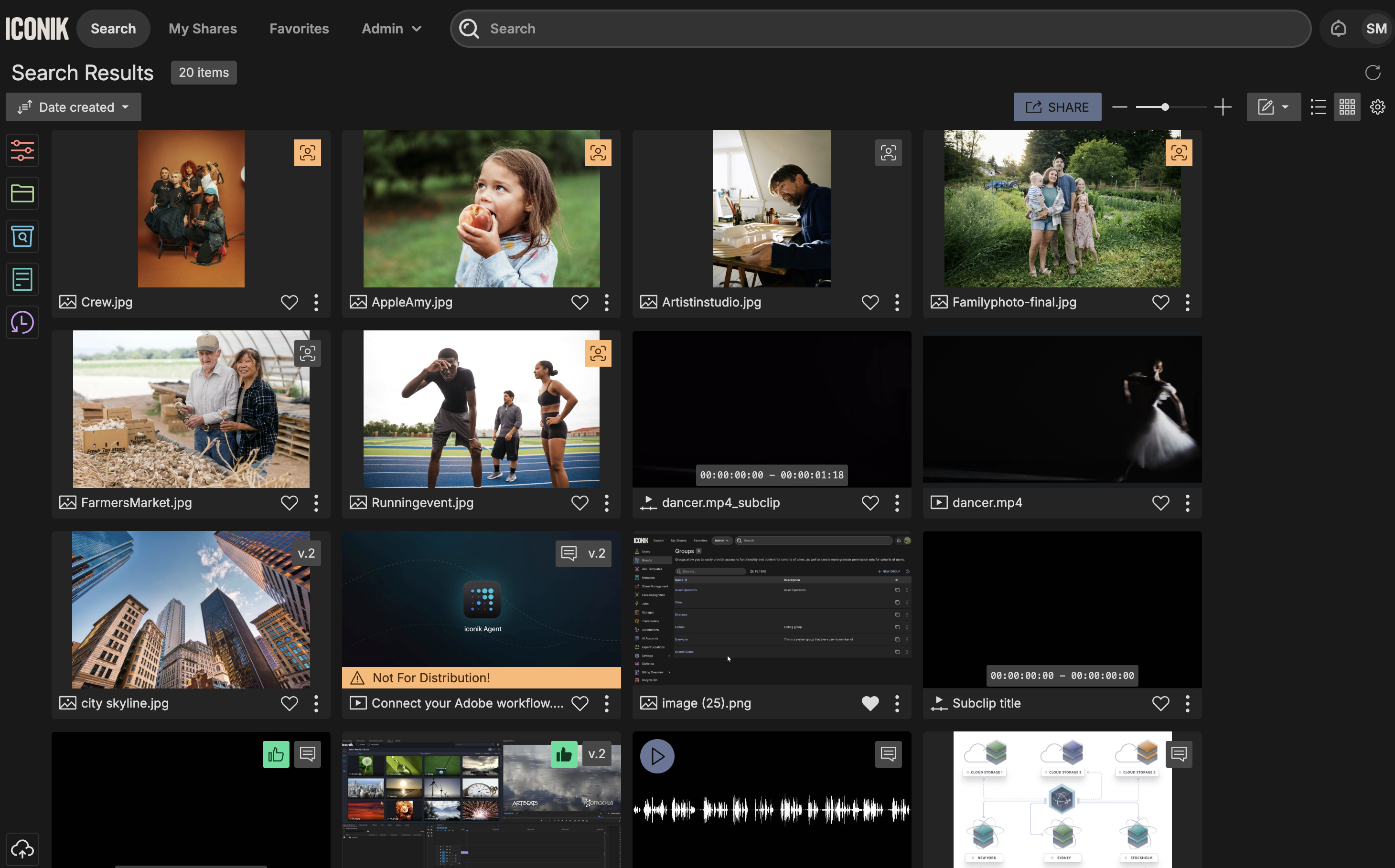 Iconik has an advanced face recognition feature for videos and images, designed to identify individuals appearing in video footage or photographs. This technology is capable of detecting people whether they are prominently featured in the foreground or subtly present in the background of visual content. By utilizing this innovative tool, iconik customers can quickly build their own library of persons relevant to their content and by indexing all assets, this will enable effortless filtering and searching for content featuring specific persons. This capability significantly streamlines the processes involved in post-production and collaborative projects by harnessing the power of artificial intelligence to organize and manage media assets more efficiently.