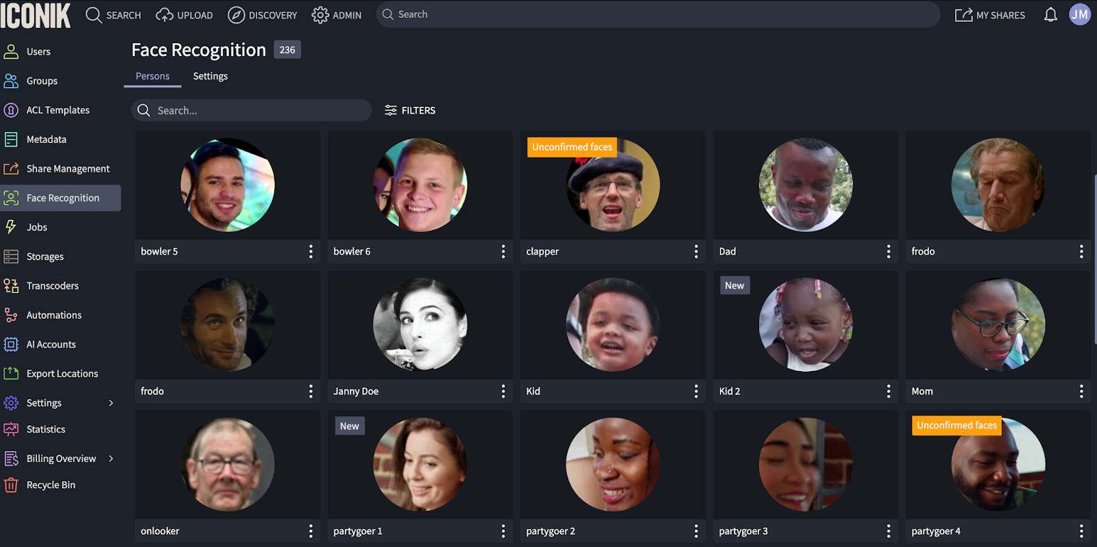 Note: Iconic does not offer a pre-existing library of person images. Instead, person images are created and stored in the cloud whenever face recognition is performed and individuals are tagged.