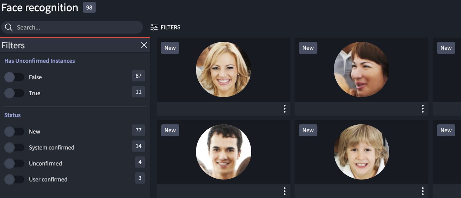 - Select the Filter option to filter on new, confirmed or unconfirmed faces.