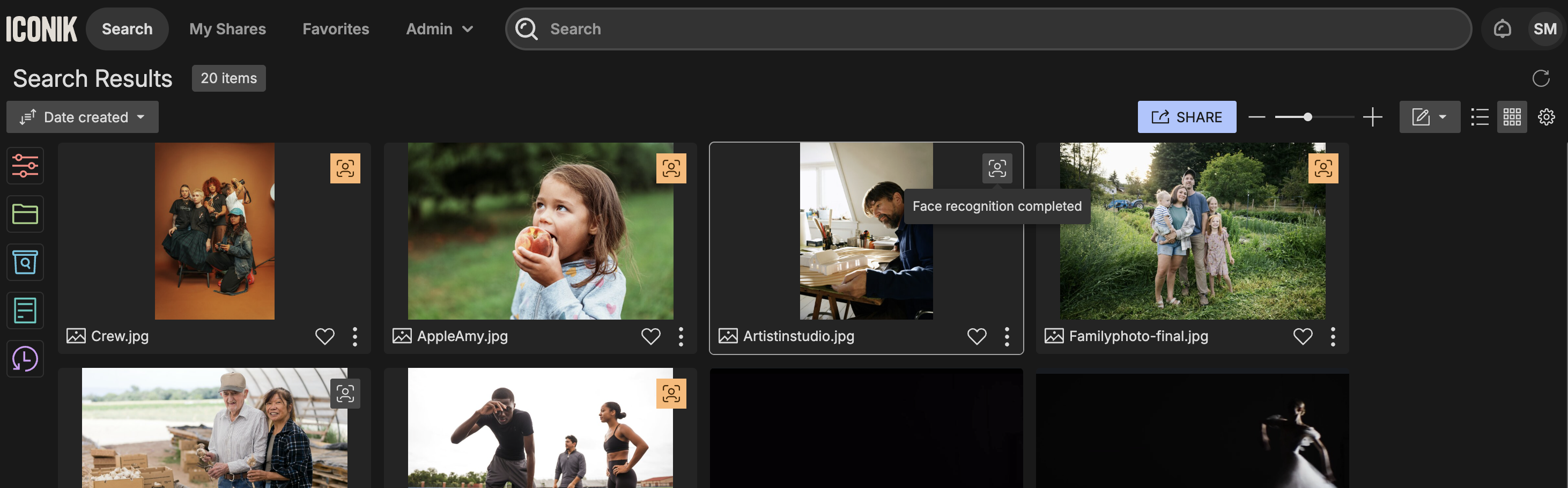 When navigating to any list of assets you will get an overview of the assets on which face recognition has been run.