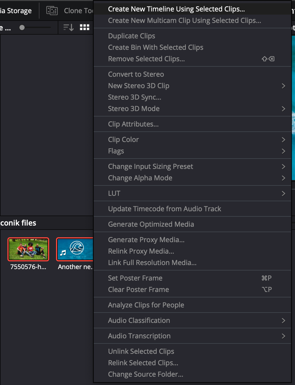 - In your Resolve project, select the clips you want to include in a timeline.