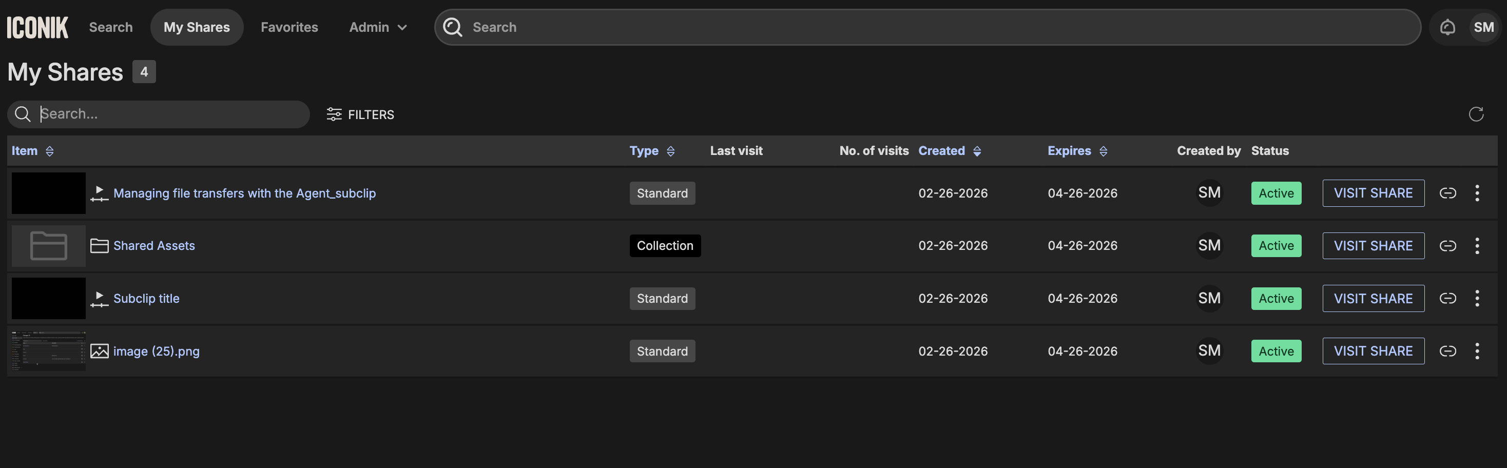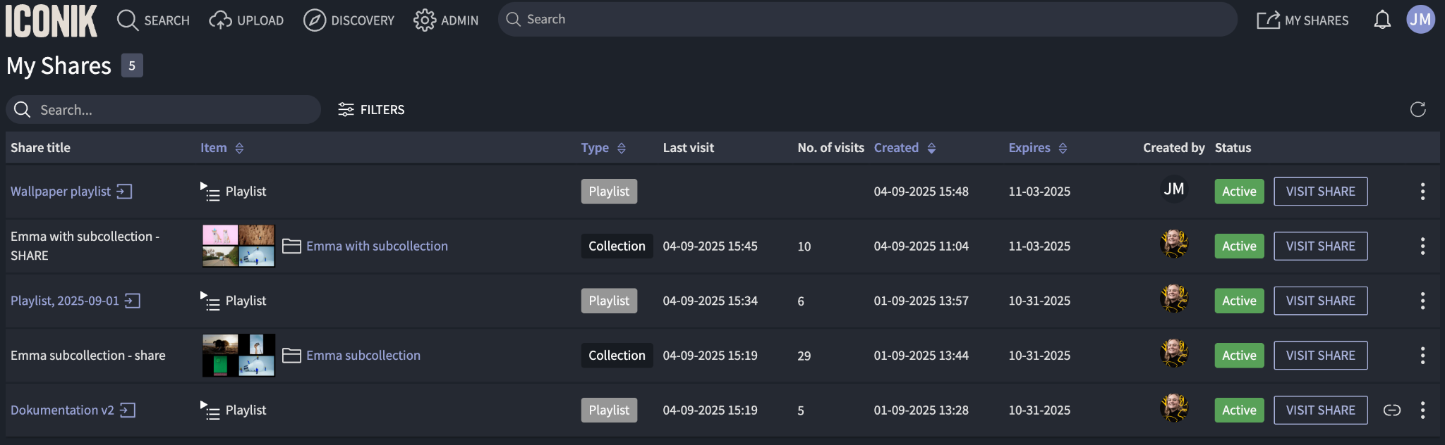 The My Shares page provides each Iconik user with an overview of the assets, collections, and playlists they’ve shared and those they’ve received from other Iconik users. This makes it easy to see what’s active, what’s expired, and who has access.