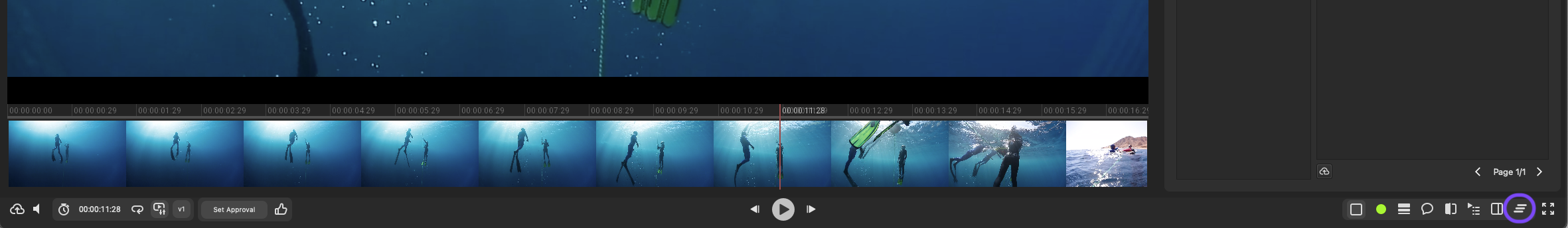 Mark assets as approved or rejected directly from the player. Click the status indicator to approve, reject, or remove the current approval status.