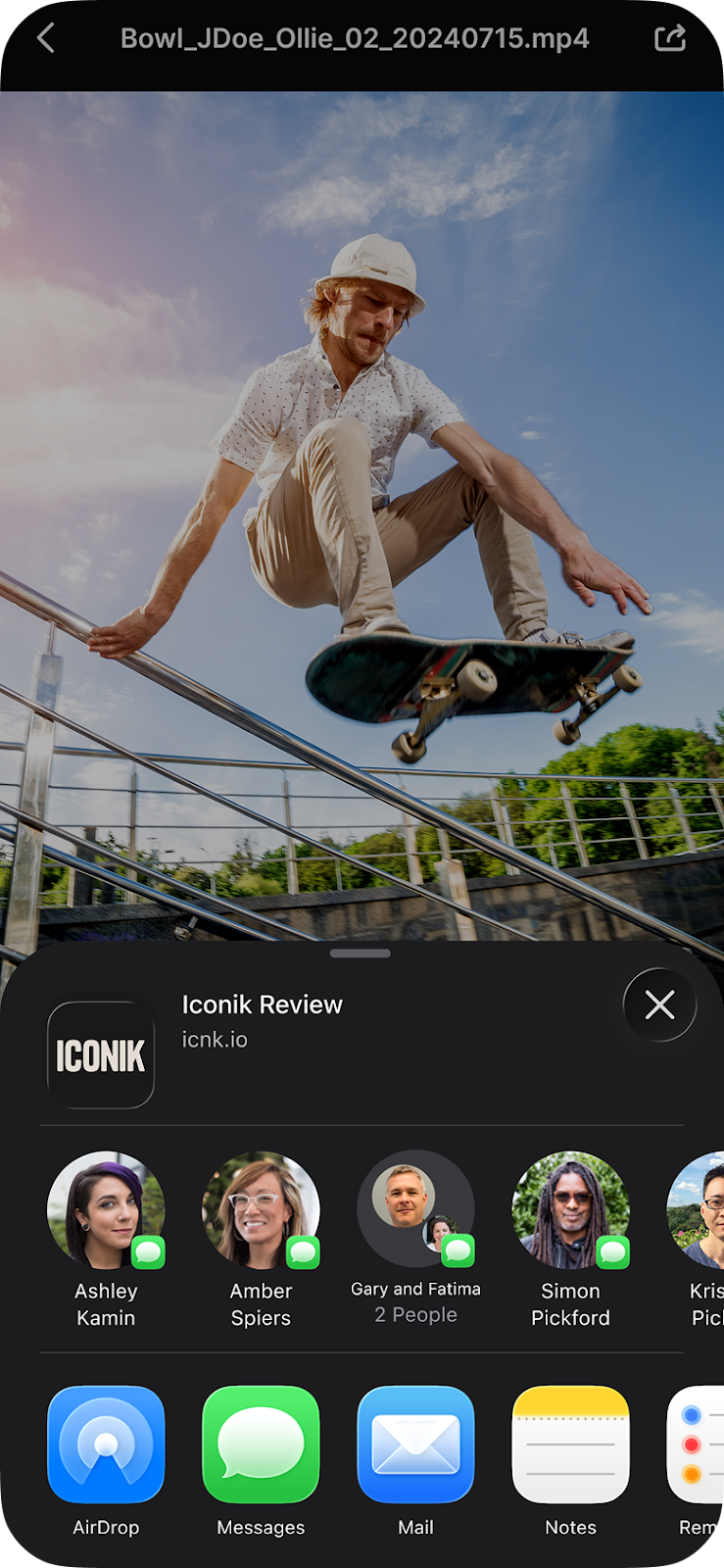 - Tap the share link, which will open the Iconik iOS app.