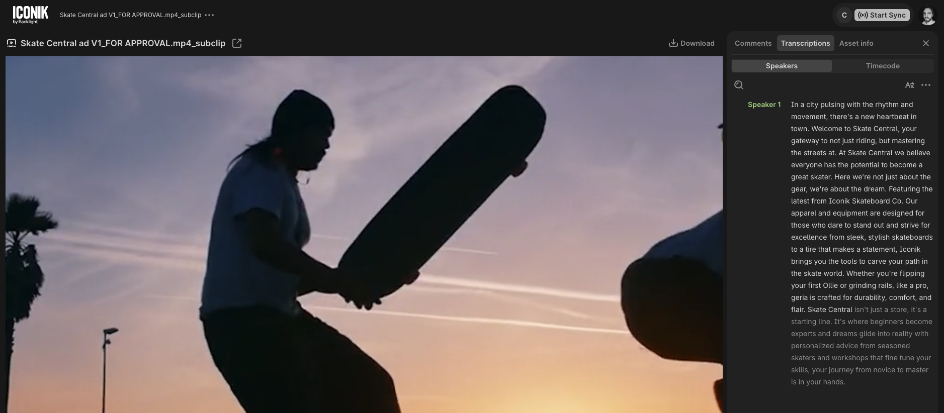 This creates consistency between what users see in Iconik and what they see in shares. Transcriptions are essential for review workflows, so we wanted to make sure they’re available wherever you're reviewing the asset.