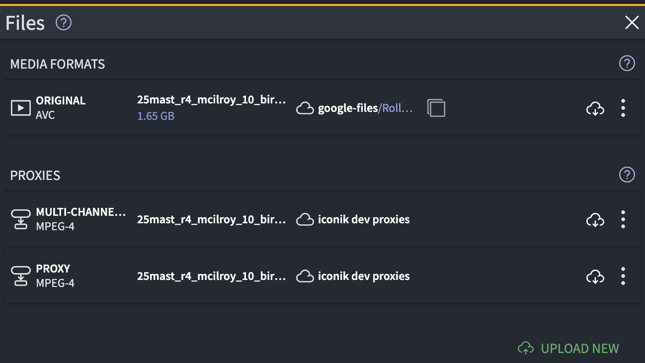 - iOS app or Iconik Player: Standard stereo proxy only (multi-channel not supported)