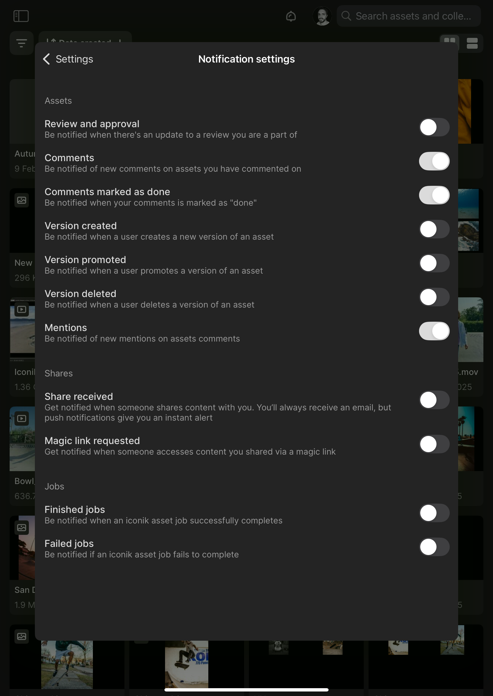 Manage your Iconik push notification preferences directly in the iOS app, without needing to go to Iconik on the web.