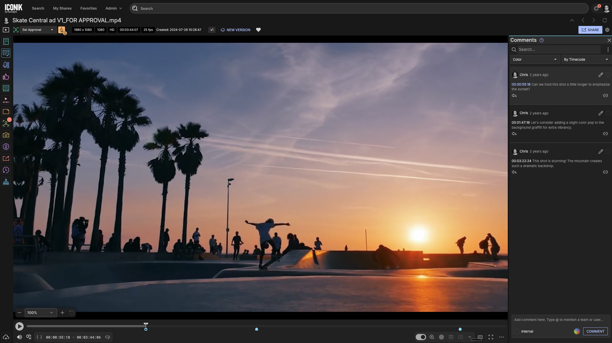 Why this helps: These changes reflect how people actually use Iconik. A neutral grey background reduces visual interference during media review, improving focus and reducing eye strain over long sessions. Moving My Shares and Favorites into the top navigation puts high-traffic pages where they belong. Consolidating admin tools makes them easier to find. And the updated typography brings the consistency of the Iconik Review experience to the rest of the platform. Together, these are the first visible steps in a new design system built to make Iconik more accessible, consistent, and easier to use across the board.