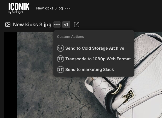 You can now apply Custom Actions directly to shared playlists, unlocking the same automation and integration capabilities you already use on assets and collections.