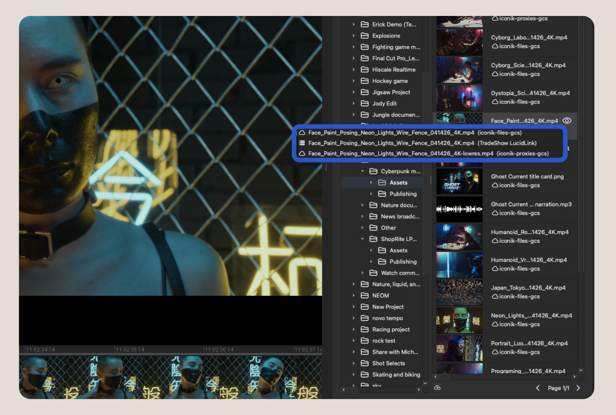 You can now toggle between the original file and its proxy while the asset is playing in the Iconik Player — no need to stop, re-open, or change your session. For example, if someone on the web reports an issue with the proxy, you can switch to it in the moment to see exactly what they're seeing, then switch straight back.